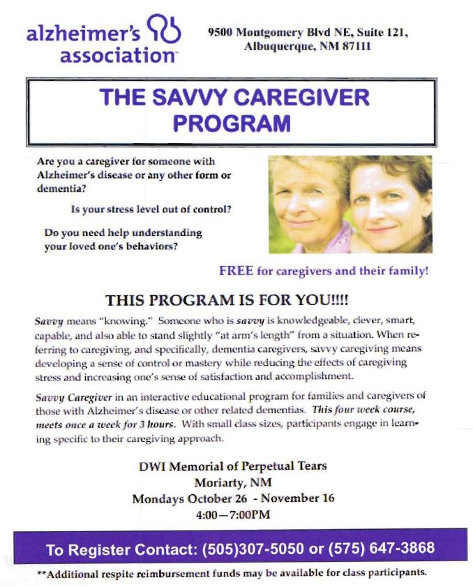 The Alzheimer’s Association New Mexico Chapter will host the following upcoming FREE classes.