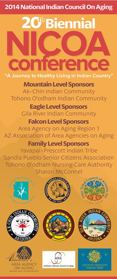 The 20th biennial National Indian Council on Aging, Inc. (NICOA) Conference took place September 3-6, 2014, at the Sheraton Phoenix Downtown in Phoenix, Arizona. The NICOA conference was held in partnership with the Inter-Tribal Council of Arizona, and the Area Agency on Aging, Region 8. There were 1,387 elders attending from 65 different tribal nations. The four-day affair offered a range of events and activities for participants, speakers, families and guests. Here are some of the highlights from each day.