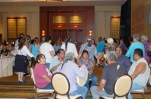 The voting general session was an opportunity for NICOA members to voice their support or opposition to the various resolutions being presented. Many well-reasoned arguments for and against resulted in 11 resolutions being approved. These resolutions will be forwarded to the National Congress of American Indians for consideration at their upcoming conference in October. The talent show highlighted the delightful skills, humor and wisdom of our NICOA members. Master of Ceremony Luterio Lopez did a terrific job of keeping everyone laughing as he introduced acts from across the country. A surprise appearance by Tina Turner (Roberta Johnston, Salt River Pima Maricopa Indian Community) and her Native Ladies, lots of great stories, jokes and beautiful songs made for an enjoyable evening.