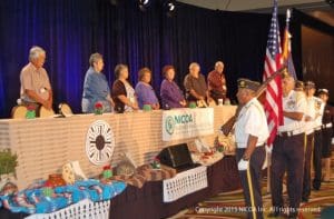 The first day of the conference began with a whirlwind of activity as many more attendees than expected arrived and were registered. A prayer offered by Delford Stevens opened the conference. The Ira H. Hayes American Legion Post 84 post the colors in a moving ceremony. Veteran Rebecca Norton sang a rousing version of the National Anthem. NICOA Executive Director Randella Bluehouse (Navajo) and Eddie Tullis, NICOA Board Chairman (Poarch Band of Creek Indians), provided a warm welcome to the members of NICOA and other guests. The NICOA board of directors briefed an audience of elders from across the country on some of the most pressing issues facing our Native communities.