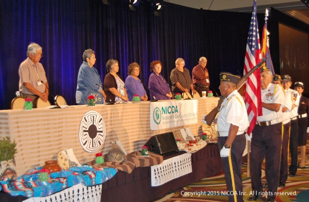 Travis Lane (Navajo), acting assistant director of the Inter-Tribal Council of Arizona, discussed the implications of the federal government’s policies of termination and self-determination. Ron Moore (Colorado River Indian Tribe), president of the Arizona Indian Council on Aging welcomed NICOA members and guests and acknowledged the many veterans present. Mr. Tullis reminded the voting members to attend the caucuses for their regions and make their voices heard regarding the resolutions that would be voted on Friday, September 5.