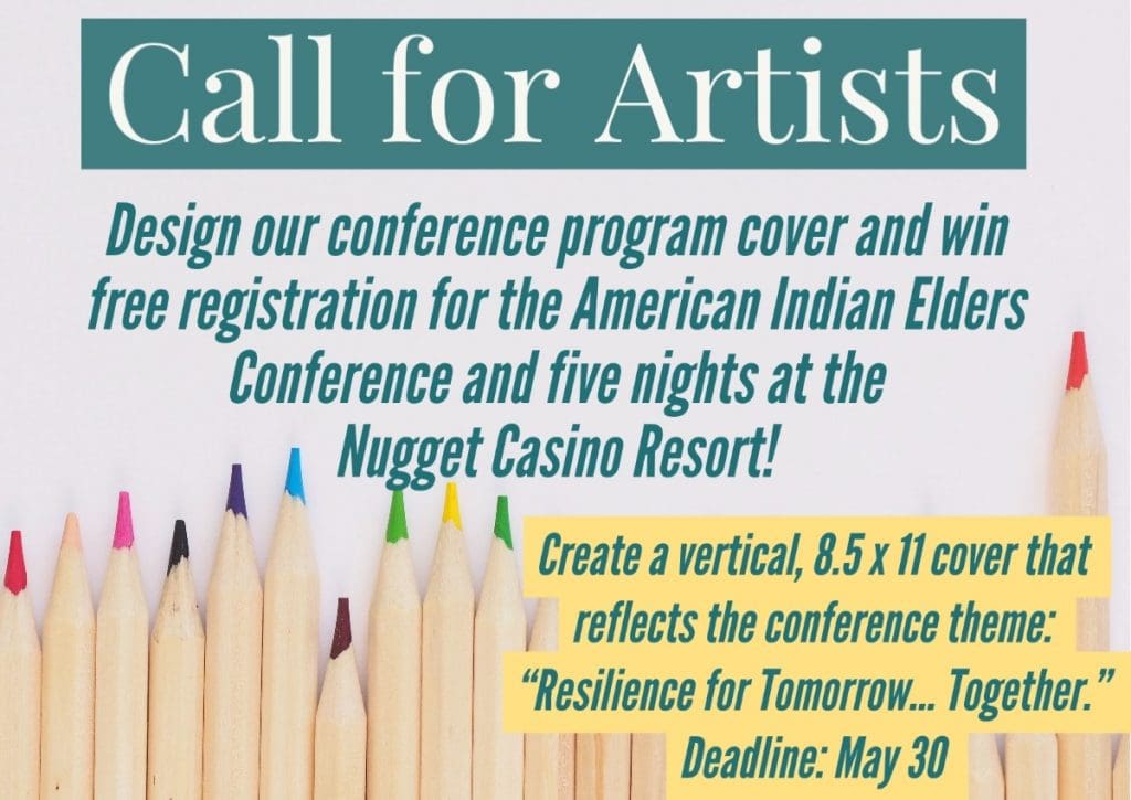 The National Indian Council on Aging is pleased to announce a special creative opportunity to allow our members and conference attendees the chance to design our conference program cover! Artists should design a vertical cover page that is approximately 8.5 x 11 in size. The artist should create a vision that will reflect our 2020 American Indian Elders Conference theme: “Resilience for Tomorrow… Together.”