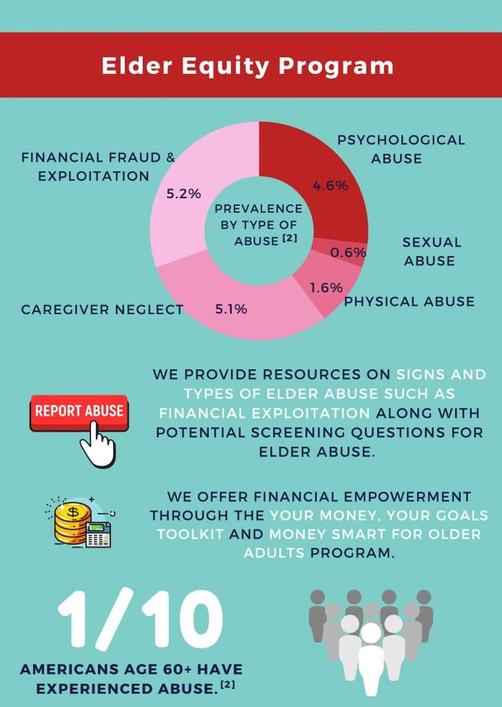 The National Indian Council on Aging (NICOA) is grant funded to serve as a partner in the National Consortium on Aging Resources for Seniors’ Equity. The goals of the Elder Equity project are to financially empower American Indian and Alaska Native elders by building their financial capability and raising awareness of elder abuse, financial exploitation, scams and fraud, as well as bringing Native elder concerns to the Aging Network and other interested stakeholders.