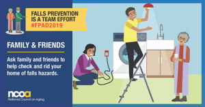 National, state and local partners use this time to educate others about the impact of falls, share fall prevention strategies, conduct fall risk screenings and advocate for the expansion of evidence-based community fall prevention programs. National and state efforts are published in NCOA’s annual Fall Prevention Awareness Day Impact Report.
