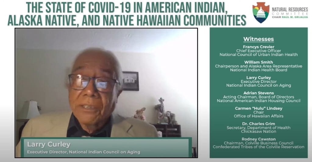 NICOA Executive Director Larry Curley speaks to the House Committee on Natural Resources Subcommittee for Indigenous Peoples of the United States as they host a hearing entitled “A Year in Review: The State of COVID-19 in American Indian, Alaska Native, and Native Hawaiian Communities”, March 23, 2021.