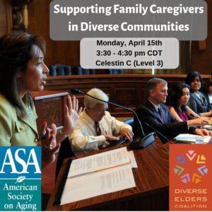 “Supporting Family Caregivers in Diverse Communities” will identify opportunities for targeted programming, share research on diverse family caregivers, offer insight into their unique needs and provide solutions. Attendees will receive practical suggestions for improving their existing health, aging, and social services programming to better meet the needs of diverse family caregivers. “Supporting Family Caregivers in Diverse Communities” is a 60-minute workshop on April 15 from 3:30-4:30 p.m. at the Hyatt Regency New Orleans (Celestin C – Level 3).