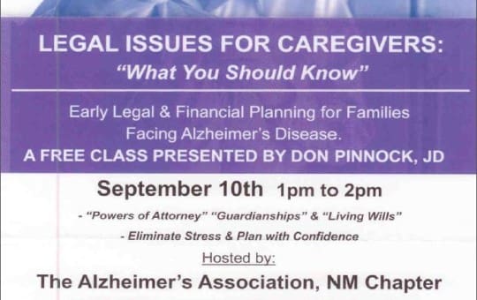 Attention New Mexico residents! The Alzheimer's Association, New Mexico Chapter is offering these FREE class for caregivers. Click on flier Legal