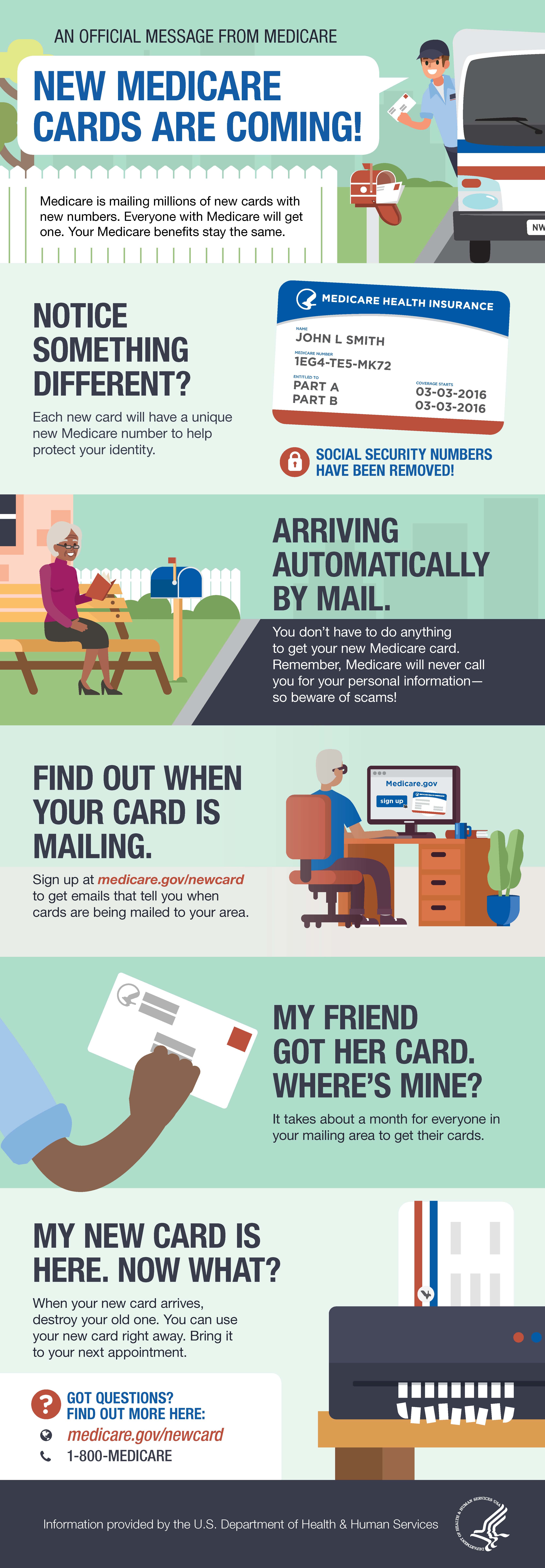 Starting in April 2018, Medicare will mail new Medicare cards to all people with Medicare, to help protect you from identity fraud. Fraudsters are
