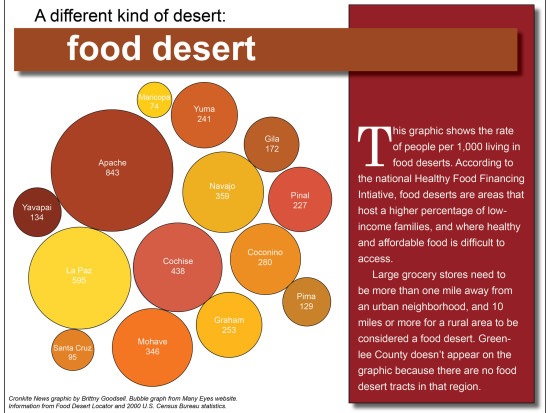 The Navajo Nation is the biggest and most populous reservation in the country, and is largely considered a food desert. There are just 10 grocery stores serving the 150,000 Navajo people living there — one grocery store for every 15,000 people. The U.S. Department of Agriculture (USDA) defines a food desert as “a census tract vapid of fresh fruit, vegetables and other healthful whole foods.” Based on the USDA’s criteria, much of Indian Country lacks easy access to grocery stores or to fresh, affordable food.