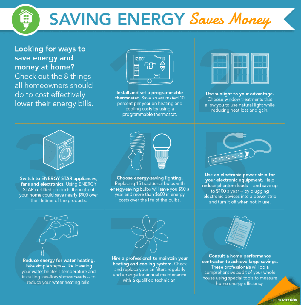 You can also save money by turning off lights when leaving a room, using energy-efficient compact fluorescent light bulbs, taking shorter showers, and only running the dishwasher and washing machine when fully loaded. Energy-efficient dishwashers use less water than washing dishes by hand with an open tap.
